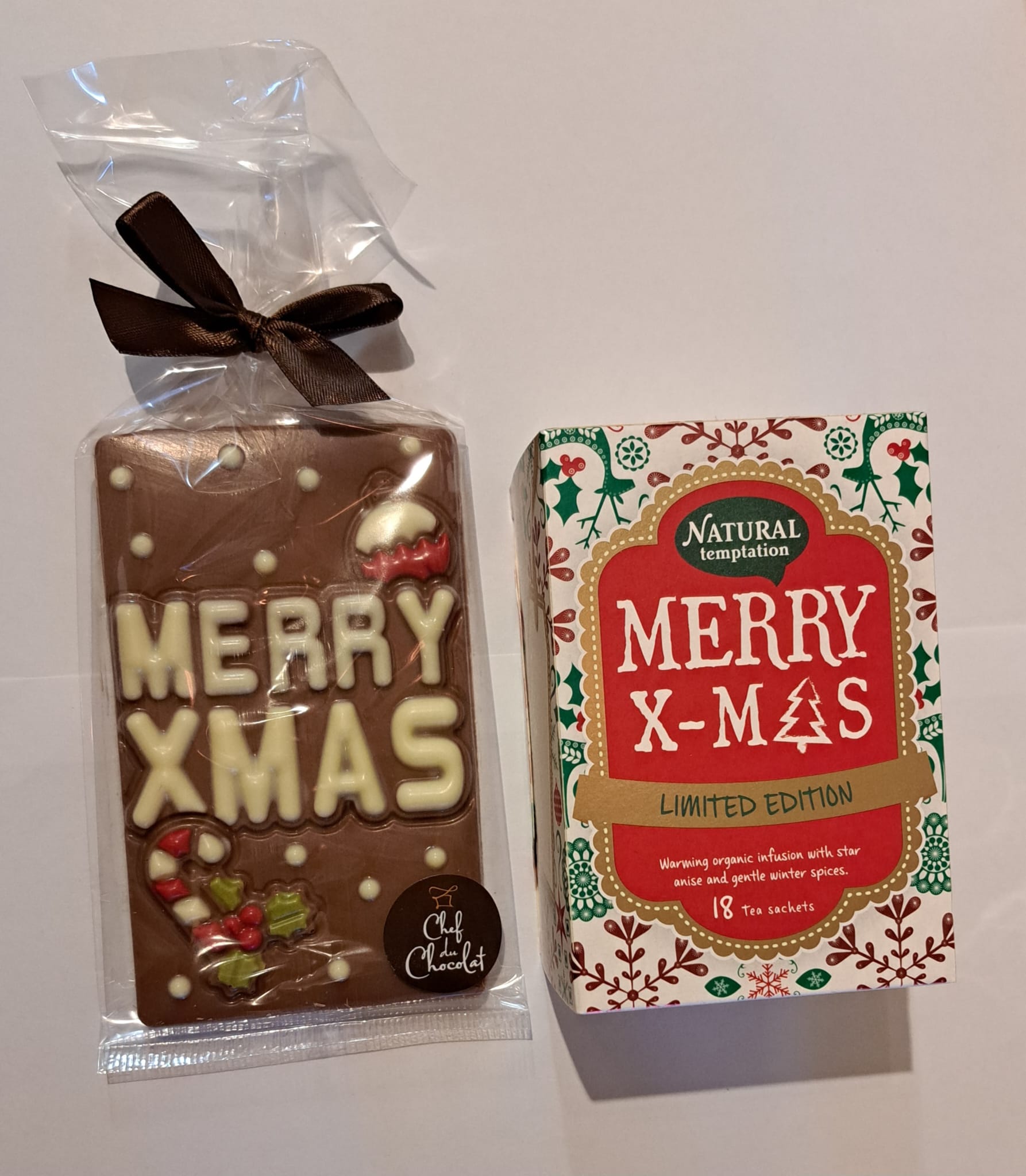 Cadeausetje: Merry X-mas thee en X-mas chocoladereep van € 10,88 voor € 9,99!!!